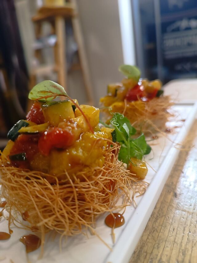 Da Slim Pickins, ci lasciamo ispirare dal nostro motto mentre esploriamo le cucine del mondo, mantenendo sempre un legame con le mie radici nel comfort food. Utilizziamo ingredienti semplici e quotidiani, trasformandoli in esperienze culinarie straordinarie. Scegliamo con cura prodotti freschi, sia locali che internazionali, per creare piatti deliziosi che offrono un comfort autentico e divertente per tutti.